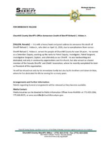 On behalf of the Nevada Police Foundation Board of Directors, we extend our deepest condolences to Sheriff Hickox’s family, friends, and colleagues, as well as the Churchill County community during this tremendous loss. Our thoughts are with all who knew and served alongside him.